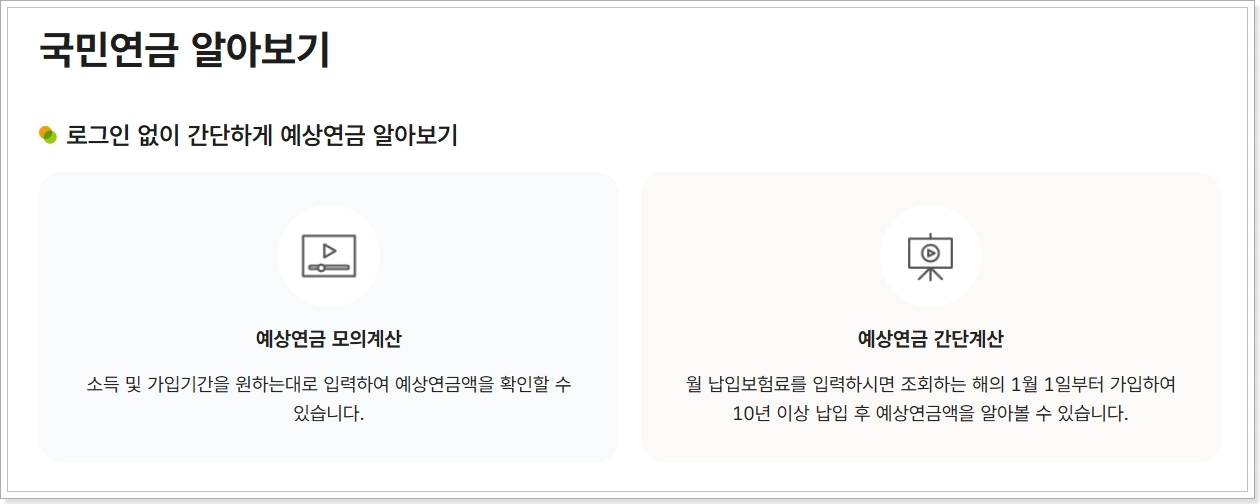 60세 이상이 되신 분들은 홈페이지에서 연금 수령 신청도 하실 수 있어요. 예상 수령액도 확인해보고 필요한 서류도 챙길 수 있어서 참 간편하더라구요.